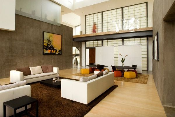 Вместо дверей хорошо воспользоваться раздвижными ширмами или сделать двери раздвижными. Двери и мебель должны быть более темных оттенков, стены — светлые.
