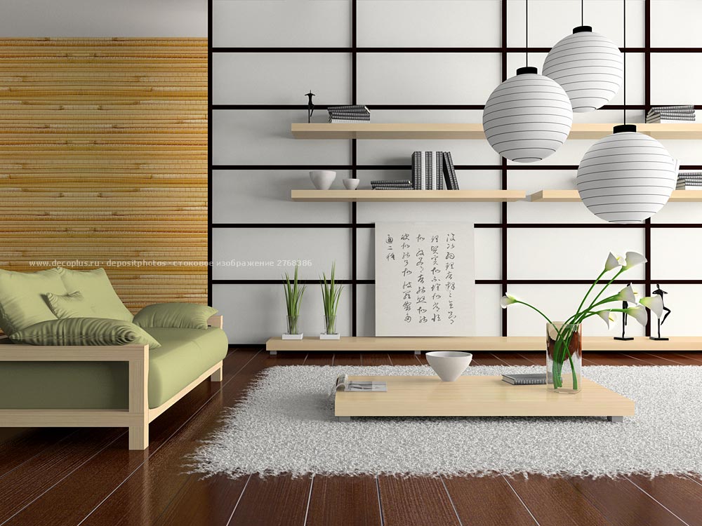 Как и все остальное, декор должен быть минимален. Считается, что вешать на стену две картины с пейзажами — это все равно, что слушать две мелодии одновременно. Но, если выбрать иероглиф, который означает нечто важное, то он подойдет лучше всего. Также хорошо использовать пару икебан и бонсай.