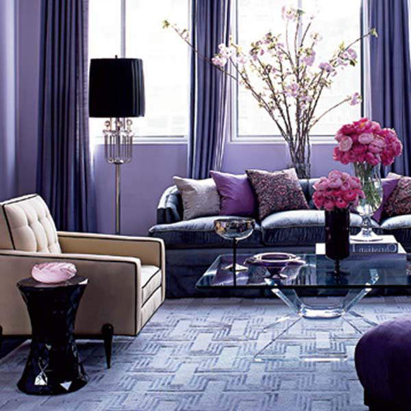 Гостиная в фиолетовых тонах должна соответствовать конкретному стилю. Современные варианты барокко, неоклассицизма, ар-деко с фрагментарным присутствием фиолетового создадут роскошный, модный интерьер. На базовом фоне спокойных цветов удачно смотрятся аксессуары и элементы декора в фиолетовой гамме: