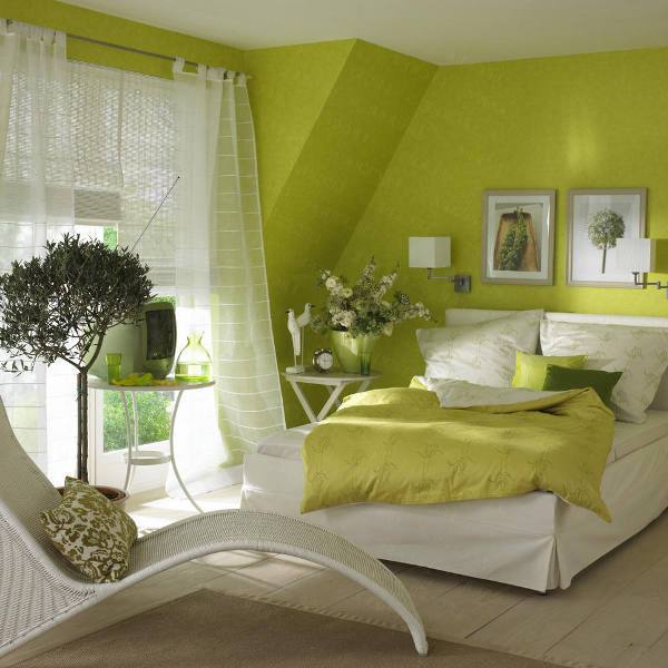 - Очень согревает зеленый цвет в спальне и пробуждает желание больше времени проводить дома. Есть еще одно полезное свойство у данного цвета – он сглаживает конфликты в семье, вызывая чувство спокойствия и умиротворения.