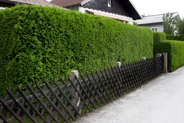 • При организации такого ограждения не только существенная доля земли будет занята изгородью, но на ещё большей территории не выживут другие растения из-за затенения и роста корней кустарников;