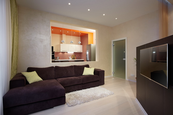 заполнение углов помещения дает эффект визуального расширения комнаты;