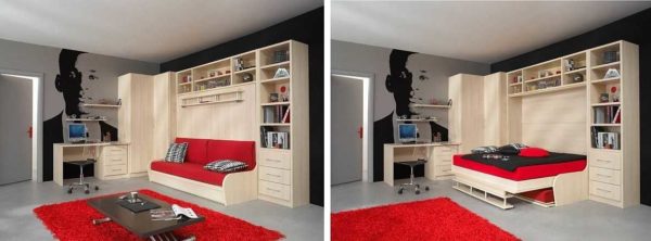 Комбинированные модели являются совмещением первого и второго варианта стола. Эта модель считается наилучшим вариантом, но занимает большое пространство в комнате. Она имеет много дополнительных элементов, которые позволяют хранить много предметов, различных принадлежностей.